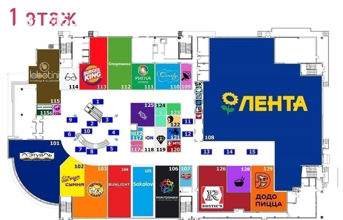 Лот № 215647 Сдаем помещение на первом этаже, отличный трафик. Прямой представитель собственника. Готовы к рассмотрению различных концепций. Помещение на схеме № 102, сразу за "Летуаль", главный вход. Уже полностью заполненного ТЦ "КОФИТЮР", якорный супермаркет "ЛЕНТА", кинотеатр "ГАЛАКС" с 4 кинозалами. Торговая площадь ТРК: 8 700 м2, помещение на 1-м этаже располагается: "Додо пицца", "Бургер Кинг", на первом этаже находятся магазин парфюмерии и косметики Лэтуаль, BurgerKing, "Labotini" обувной магазин, Аптека Ригла, Четыре лапы, ювелирные магазины, магазины услуг. Поток посетителей 10000/сутки. Готовы обсуждать условия.